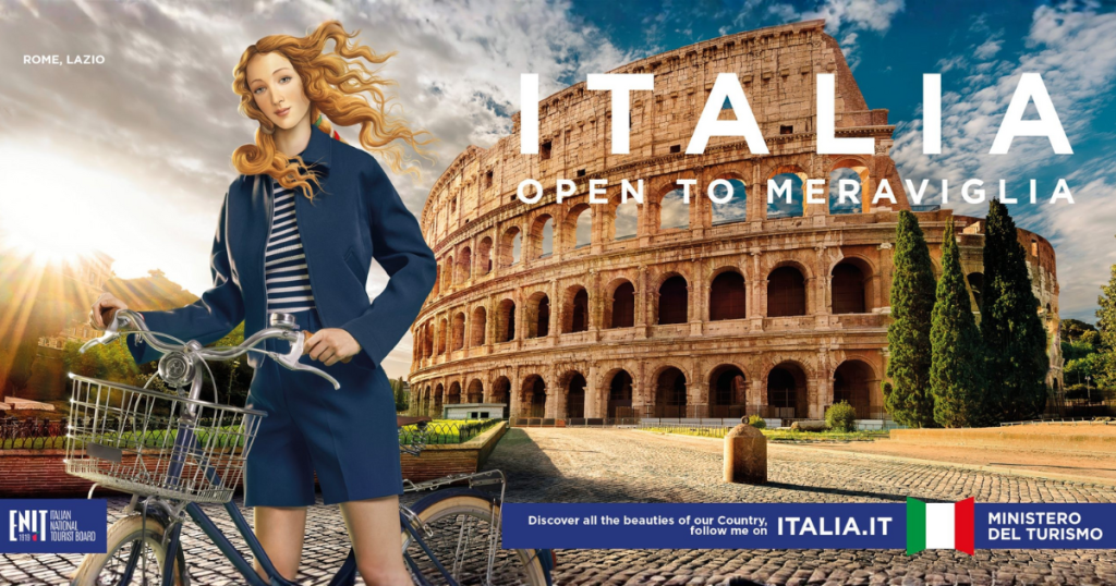 Now, let’s be honest, this one got a lot of attention, not all of it good. Italy’s “Open to Meraviglia” campaign featured Botticelli’s Venus as an influencer exploring modern Italy. Some people loved it, some people… not so much.
